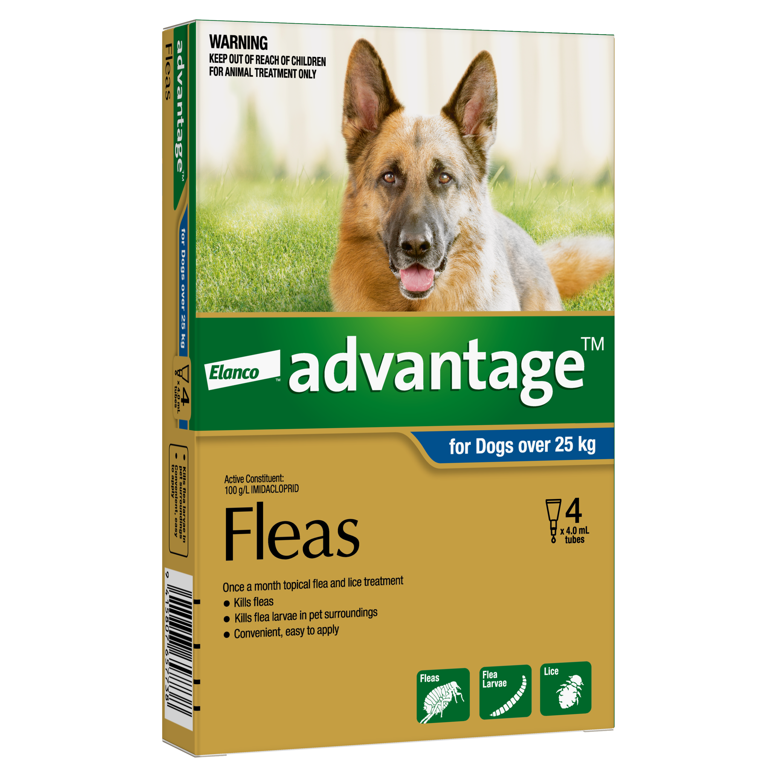 Tried and trusted flea control for over 15 years. Advantage is the fastest way to a flea free home. A safe easy-to-use spot-on, Advantage is applied monthly. Its super ingredient stops fleas from biting within 3 to 5 minutes and kills both adult fleas and larvae within 20 minutes to 1 hour. Since Advantage works on contact so fleas don’t need to bite, dogs suffer fewer painful flea bites, reducing outbreaks of Flea Allergy Dermatitis.