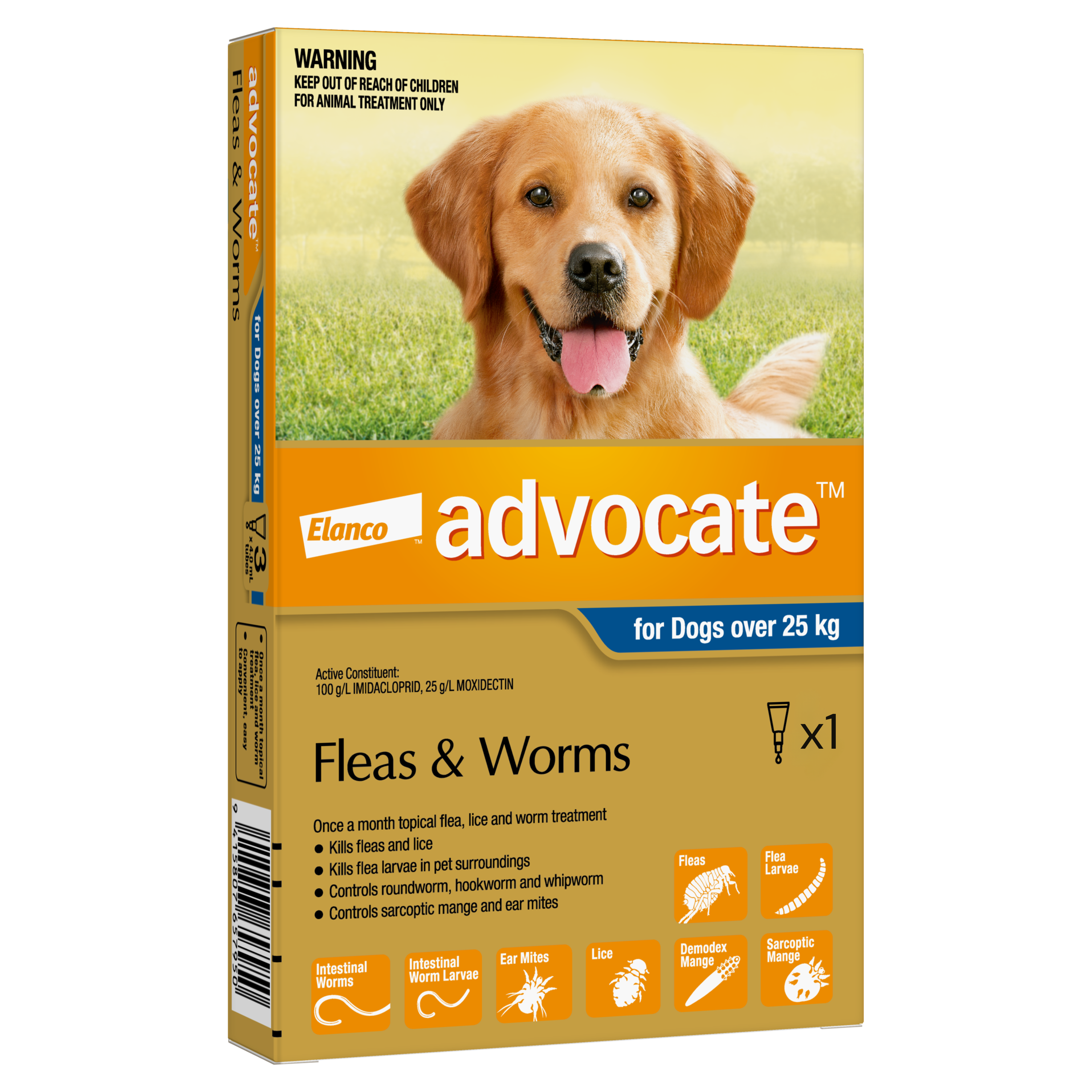 Protect your pet - inside and out. Advocate, a patented combination of Imidacloprid (from Advantage) and Moxidectin, is a break-through in the treatment of parasites in dogs. Advocate treats and protects against the major parasites of your pet, inside and out. Advocate is the most convenient way to protect your pet as it is the only spot-on product to control fleas, ear mites, lice, mange mites, and gastrointestinal worms in dogs!