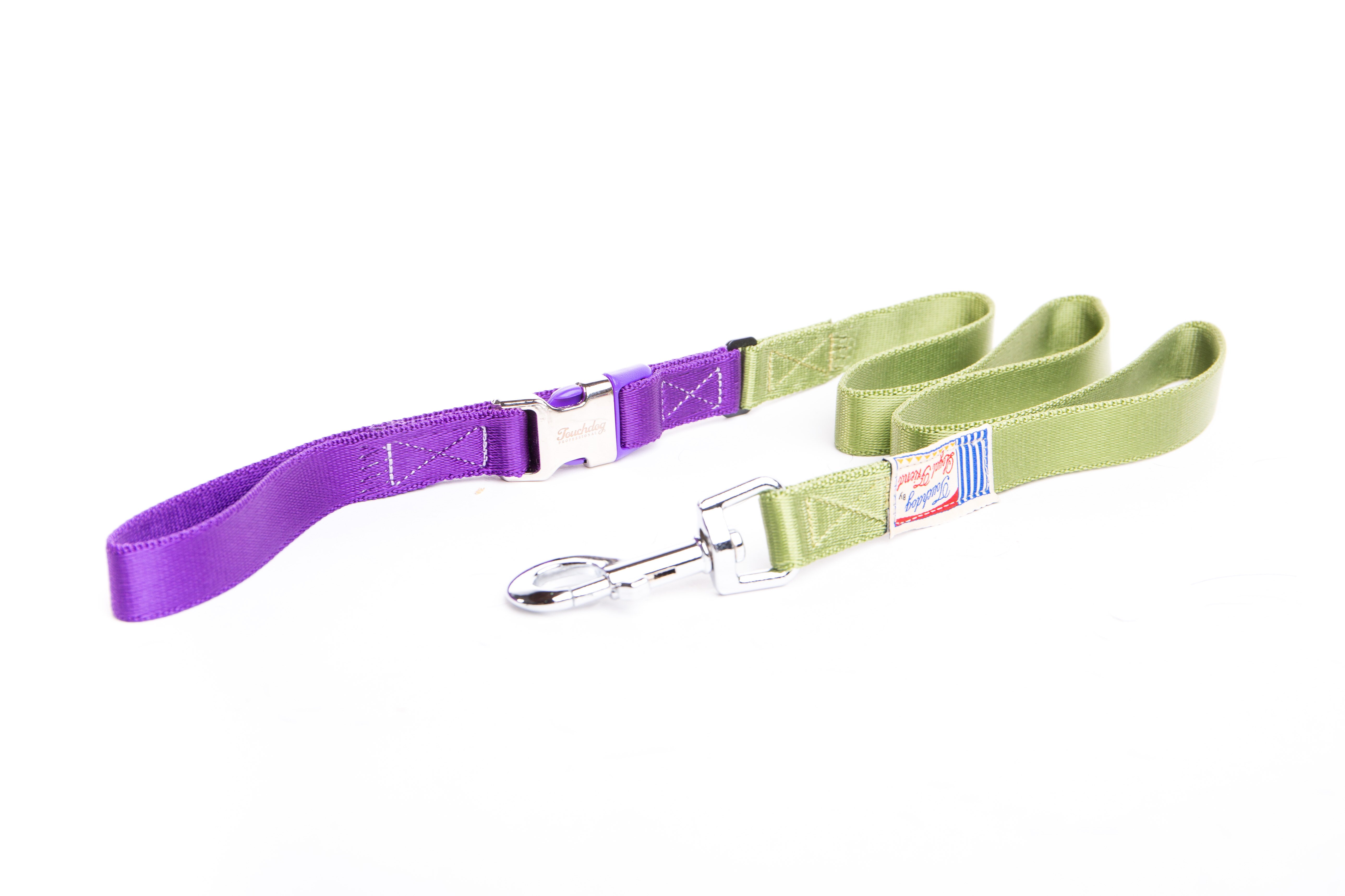 Touchdog collars and leads are made of durable woven nylon, with secure buckles made of coated metal and strong plastic. A buckle is designed into the handle to allow you to temporarily restrain your dog or loop it around your belt without having to unclip the lead!