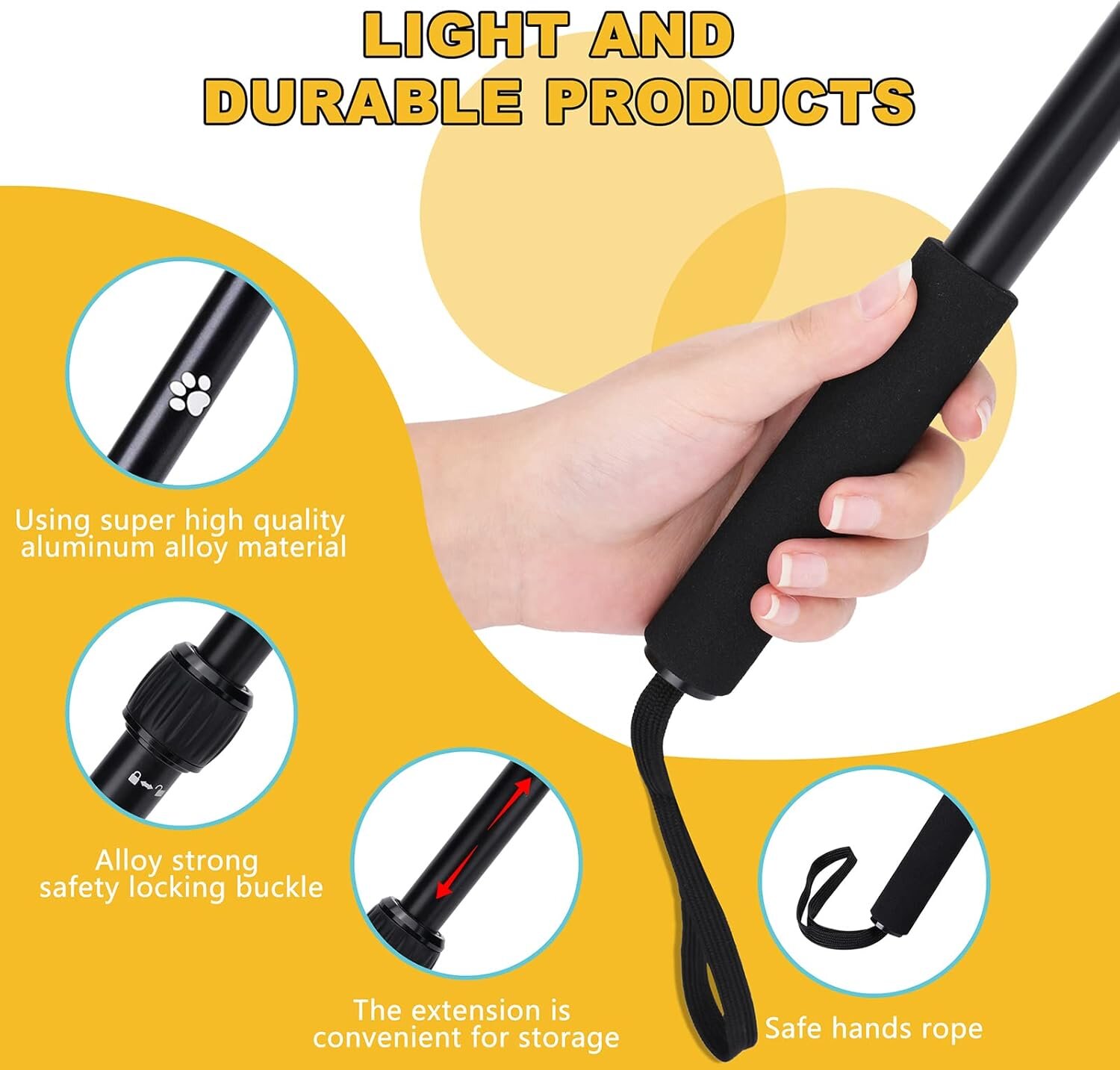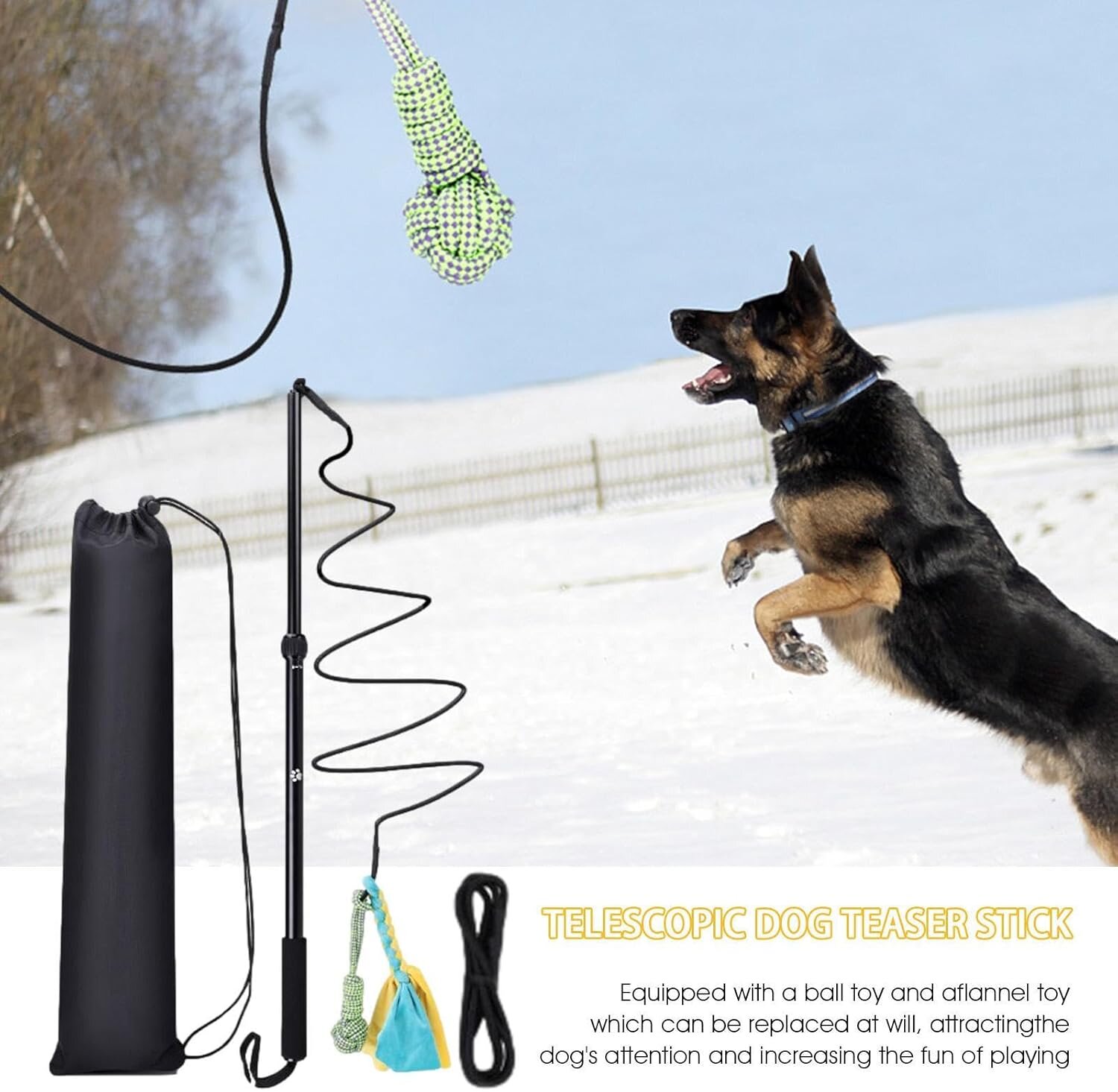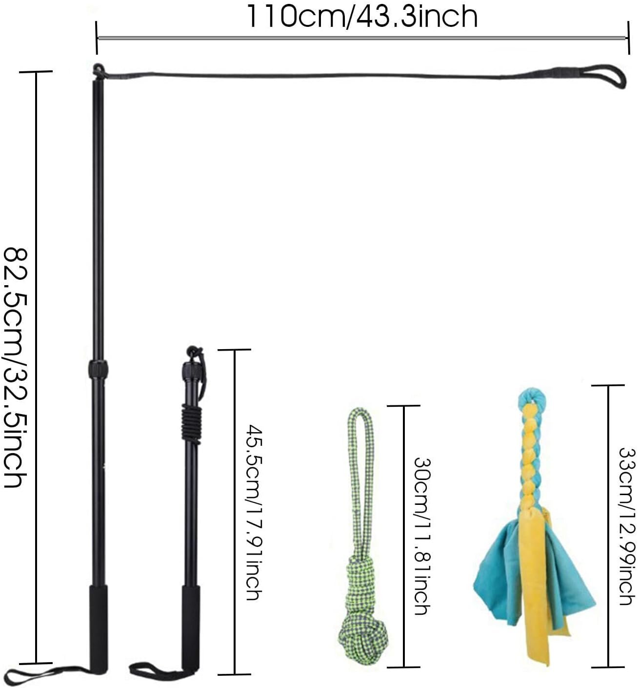 - Flexible & Retractable, Easy To Carry: The retractable dog flirt pole is cleverly designed and can be easily retracted to a suitable length (40cm-102cm), making it easy for you to adjust it according to occasions and needs. Due to its compact size and light weight, it can be easily put into a backpack or pocket, perfect for outdoor travel or daily dog walking.