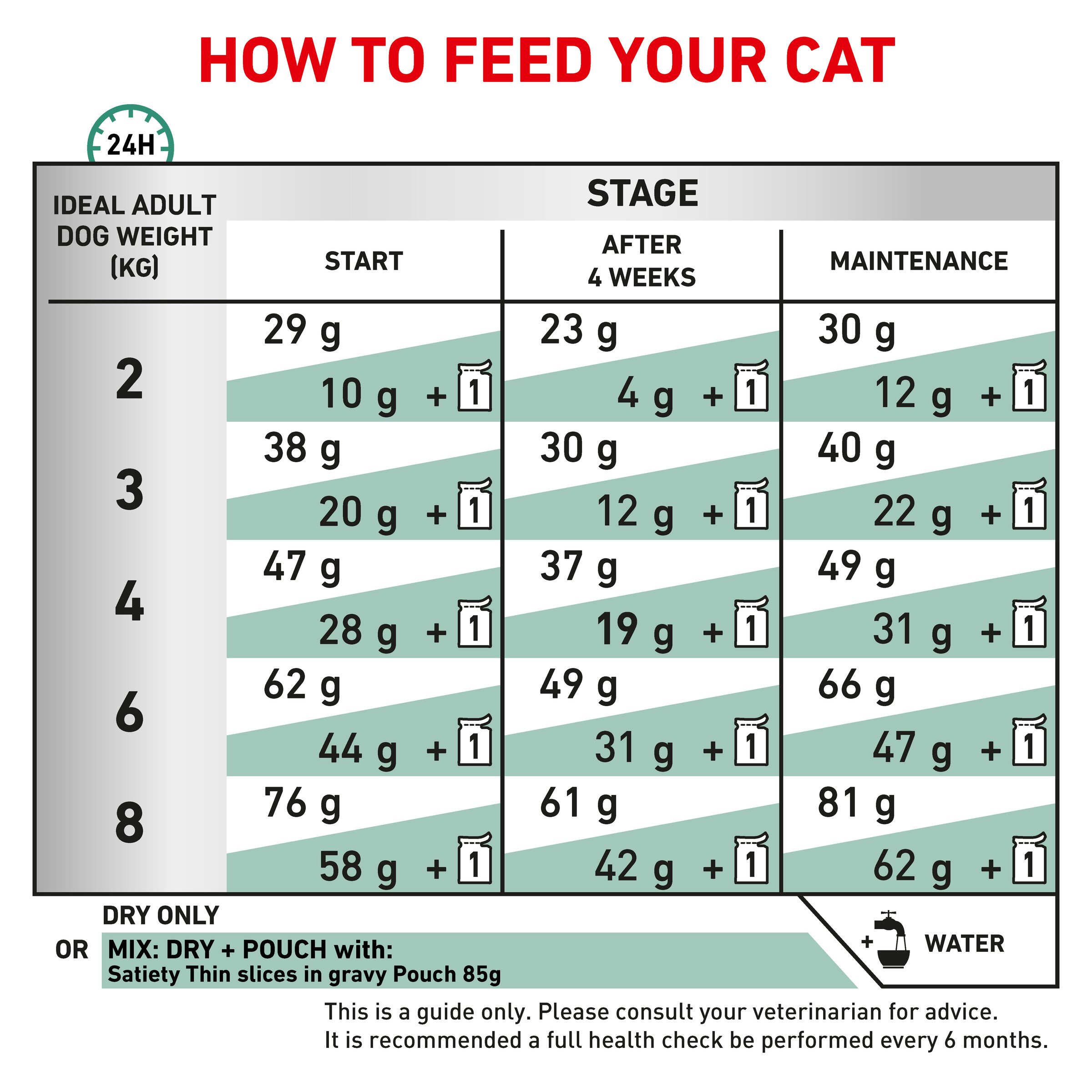 Formulated for weight loss in cats, Satiety Weight Management is design to help reduce hunger. Satiety enables your cat to receive a 32% larger portion than your average high-fibre weight loss diet. This is achieved through a combination of high protein and a special blend of fibres.