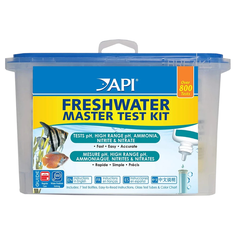 This kit tests tap water and aquarium water for five different parameters that affect the health of freshwater fish: pH, high range pH, ammonia, nitrite and nitrate.