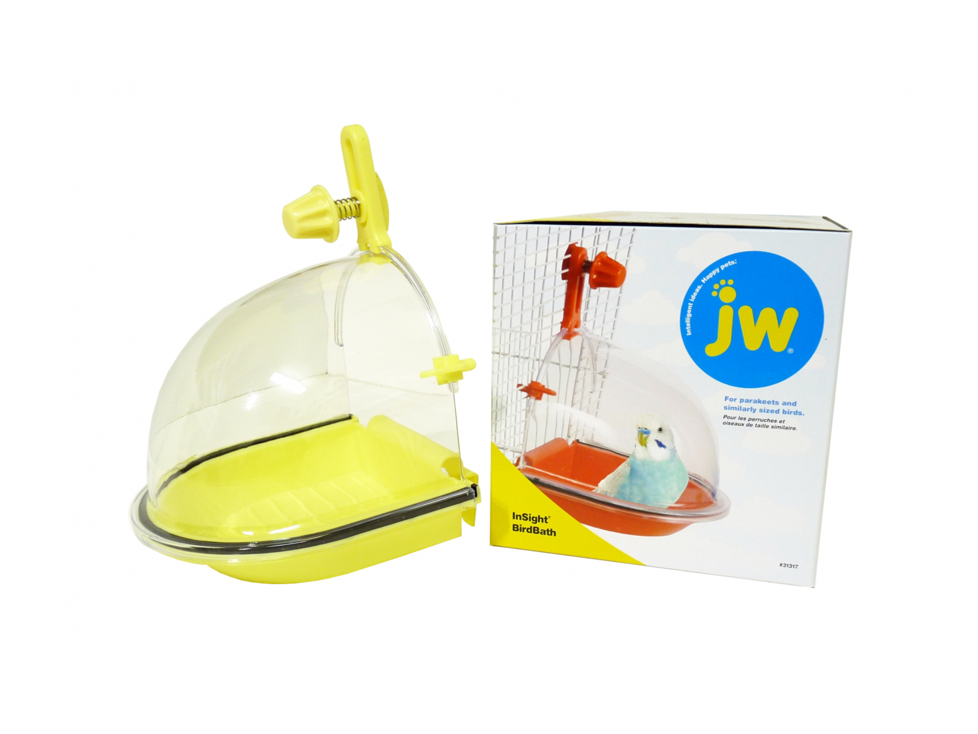 The JW InSight Bird Bath is an easy and fun way to support your bird’s healthy bathing habits. This colourful accessory gives birds a convenient spot to bathe, and it easily attaches to the main door of most small and medium cages with a screw-on design. It’s the perfect size for parakeets, cockatiels and birds of a similar size. Adding a tiny bath to your cage is an inexpensive way to help maintain your bird’s feather health and to cut down on feather dust.