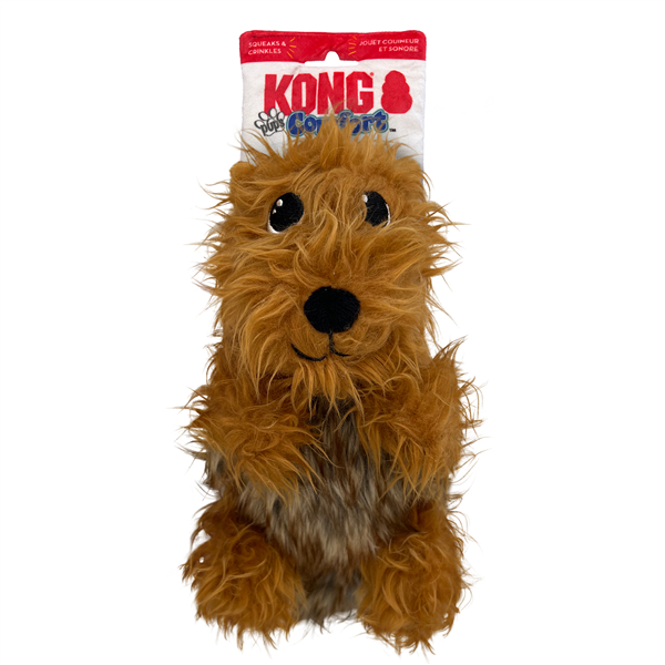KONG Comfort Pups’ super-plush fur and floppy bodies make them ideal snuggle buddies for cuddling and fetching fun—plus, dogs can play with the crinkly, plush packaging! A squeaker and crinkly ears spark instincts and keeps pups playing while the adorably floppy body makes shaking even more satisfying—with less stuffing for less mess.
