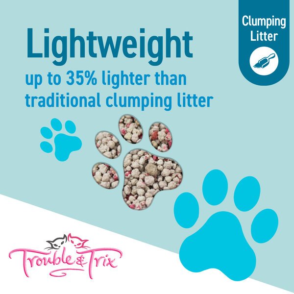 •Up to 35% lighter than traditional clumping litter