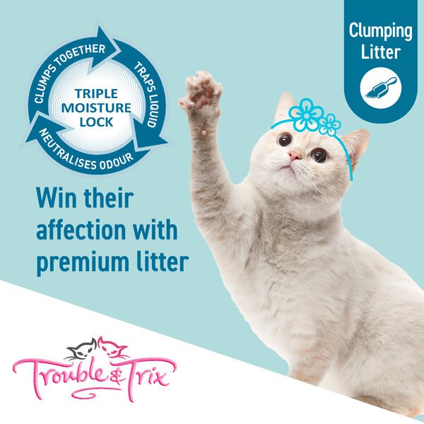 The Trouble & Trix cat litter range combines superior, long-lasting odour control, rapid absorption, and enhanced cleaning convenience via scoopable clumps or a fresher, lower maintenance home environment. Ranging from good to extreme odour control in a variety of litter styles, Trouble & Trix cat litter ensures the home you share with your cat is always clean and fresh.