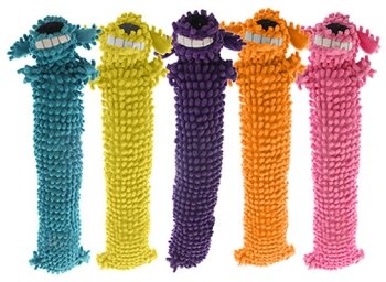 All of the fun, none of the mess! Now pups get the squeaky joy of playing with their best buddy Loofa Dog, but pet parents don't have to clean up a room full of pulled stuffing. The Multipet Loofa Floppy Dog "Light-Weight" with Squeakers is perfect for flinging around the yard or leaving indoors for your best buddy to cuddle.