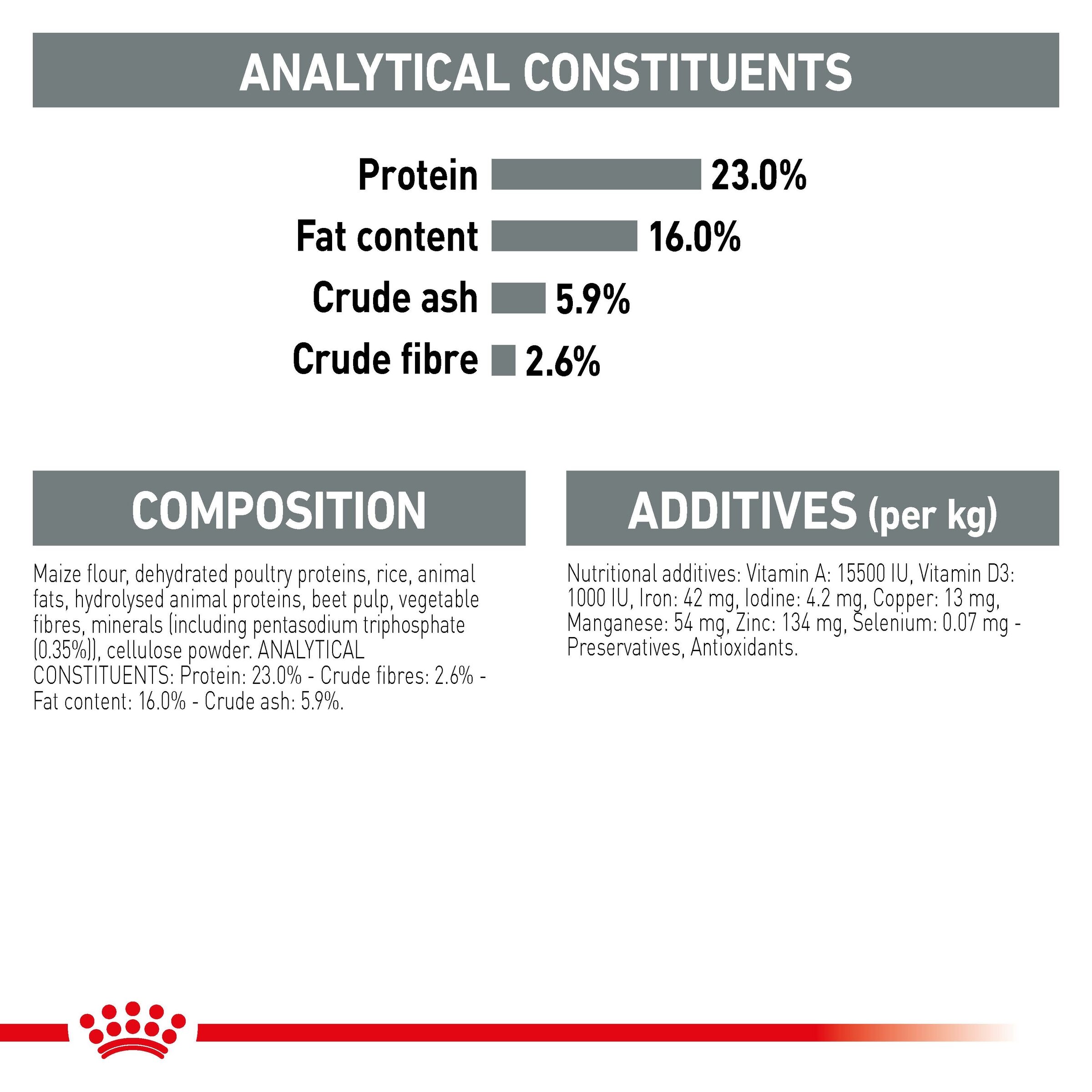 Royal Canin® takes pride in ensuring the scientific reliability of all product information. The information in this product listing was true and accurate at the time of publication. However, please note that from time to time, for example due to ingredient availability or a change in sourcing factory within our global factory network for the purpose of ongoing supply, it is necessary to make product changes at short notice, and there may be some delays in updating the information in our product materials