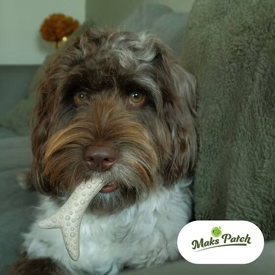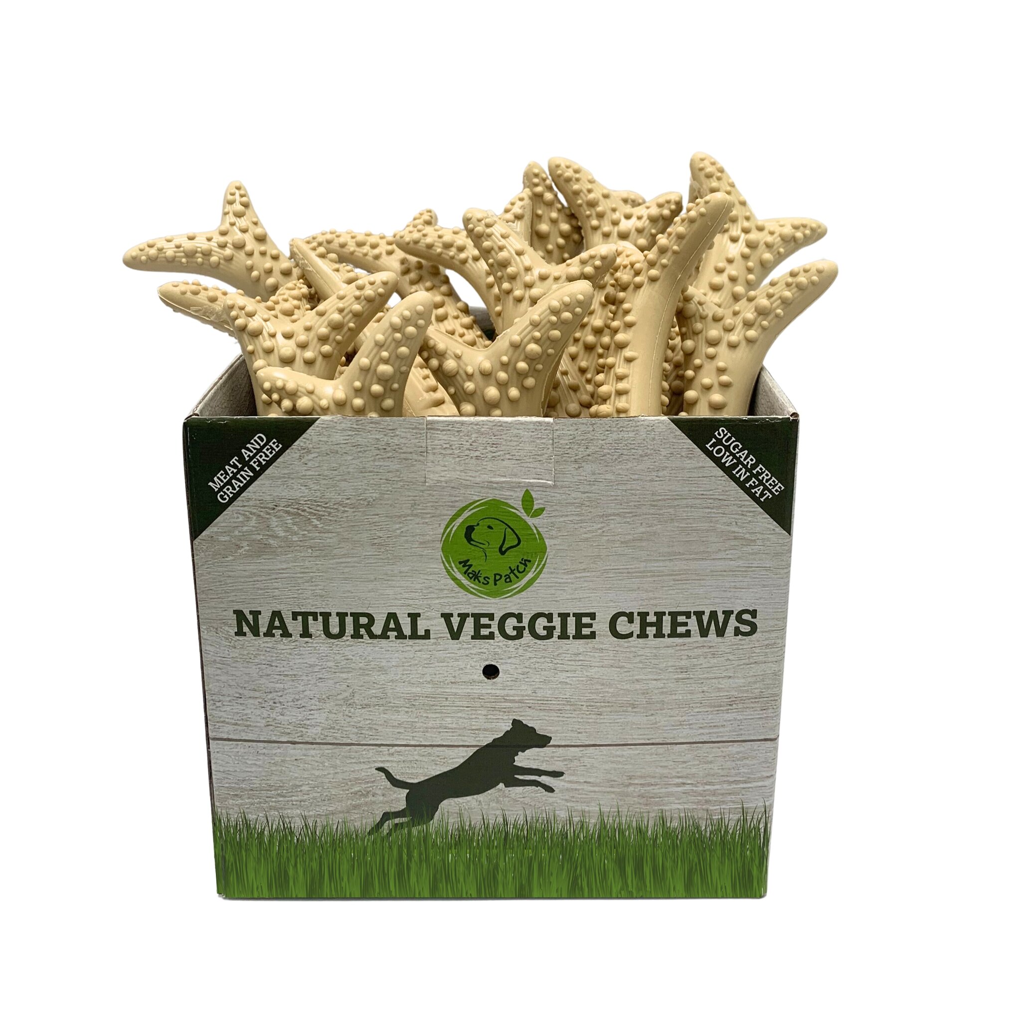 Our playful Mak's Patch Peanut Butter Antler veggie chew is designed with textured bumps that help clean your dog’s teeth as they chew.