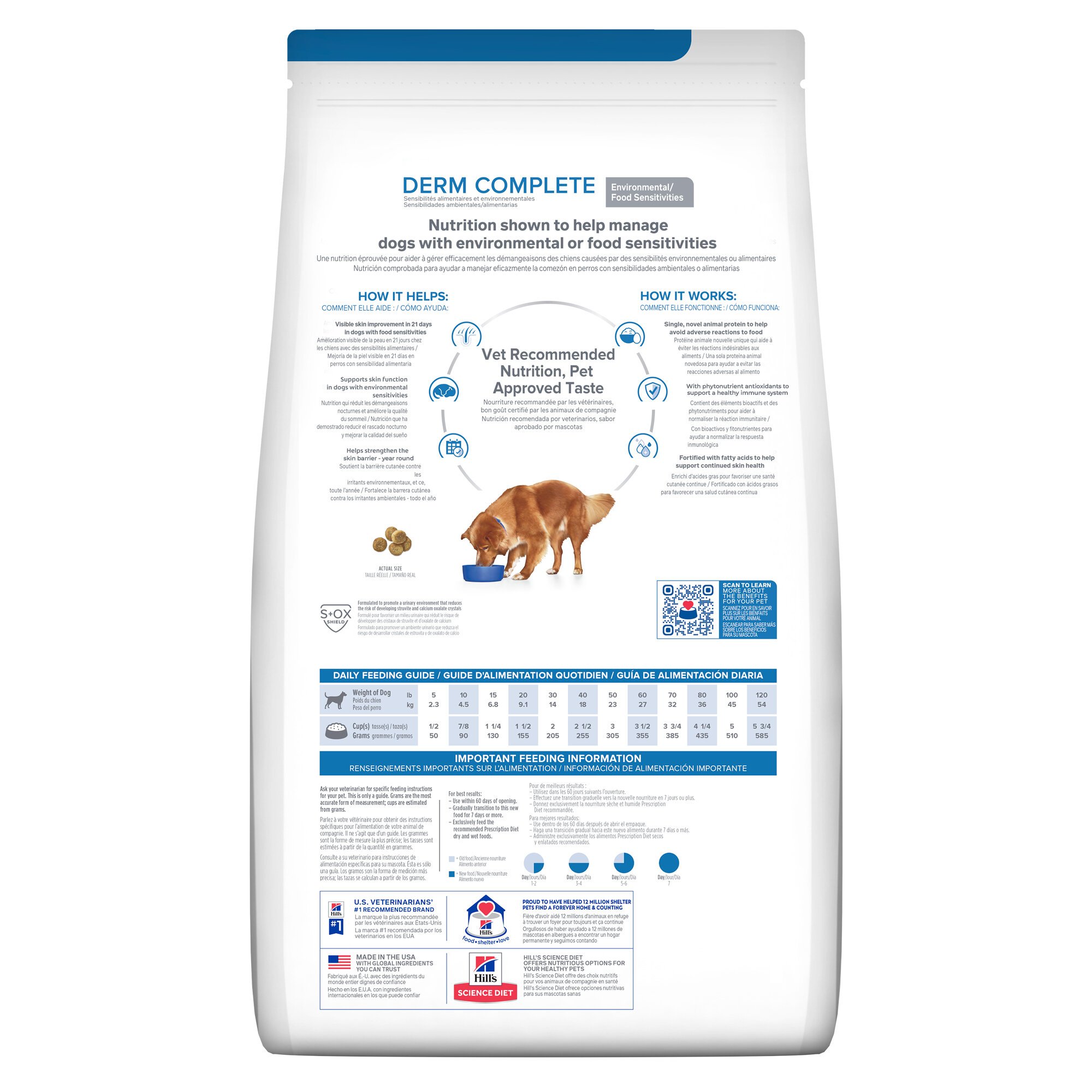 Hill's Prescription Diet Derm Complete Rice & Egg Recipe Dry Dog Food provides all the nutrition your dog needs and can be used long-term. Please consult your veterinarian for further information on how our Prescription Diet foods can help your dog to continue to enjoy a happy and active life. This dry food is made with delicious ingredients and has an irresistible taste that dogs love.
