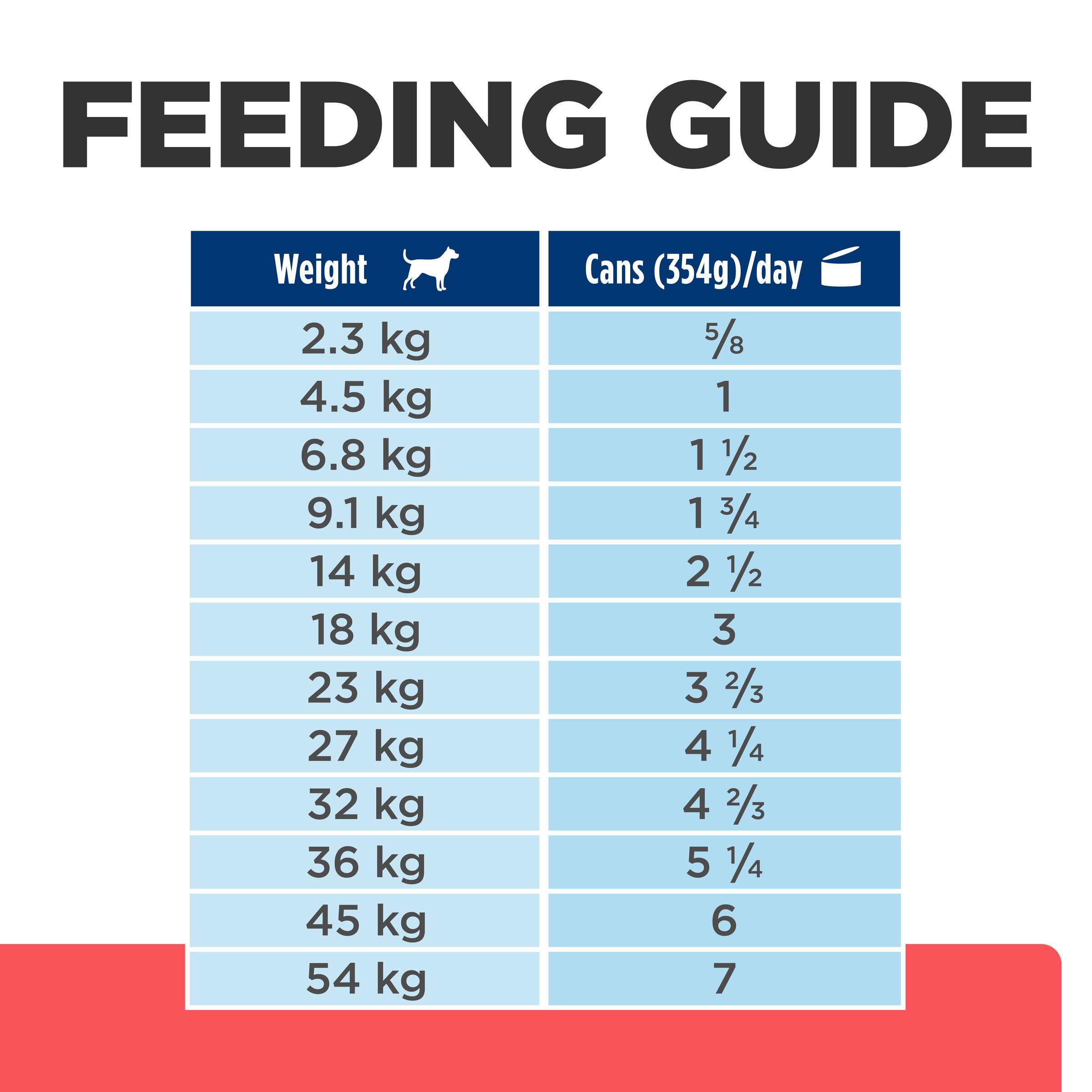 Weight of Dog - lbs (kgs) Amount per Day - 12.5 oz (354 g) cans