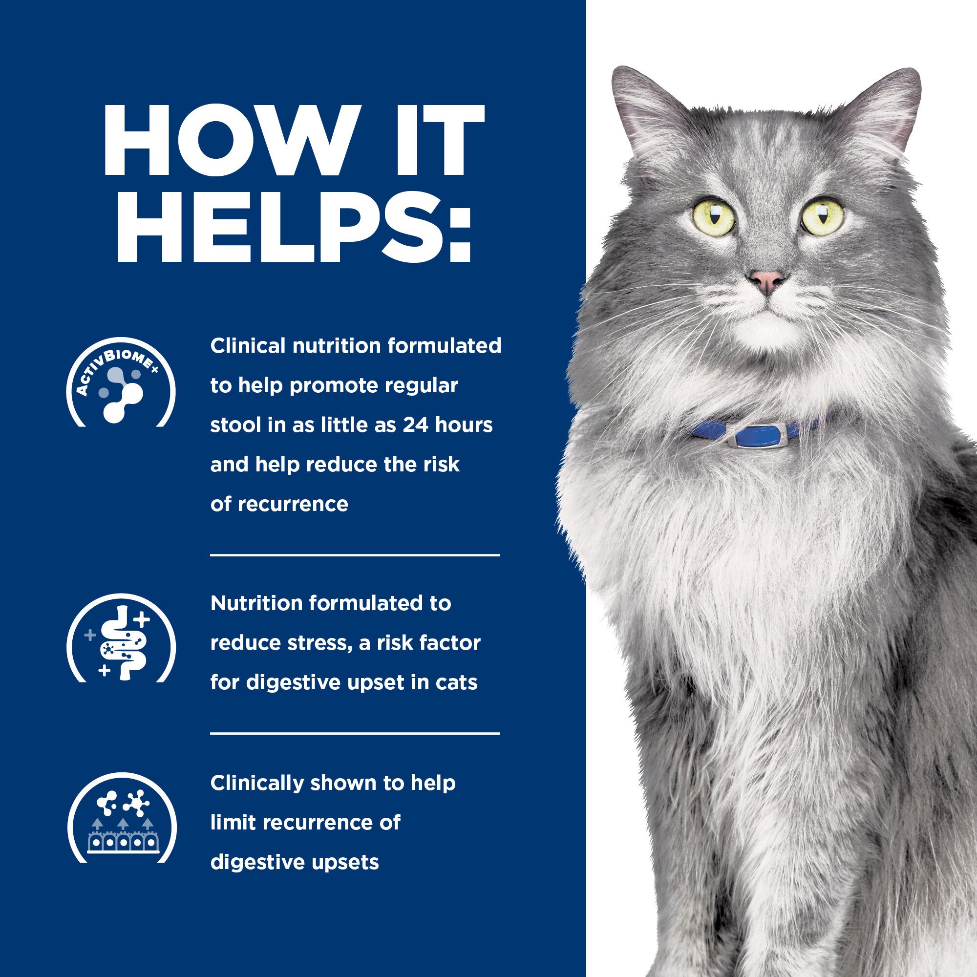 Your cat’s digestive health can be negatively affected by many things and when your cat has digestive upset, it’s a thoroughly unpleasant experience for everyone involved and could be stressful for your cat. The good news is that you can help your cat feel better with a food that revolutionises the way to approach fibre-responsive GI issues by putting microbiome health – the unique gut ecosystem of your pet - at the forefront of GI care and has ingredients to help reduce stress. Hill’s nutritionists and veterinarians formulated Prescription Diet