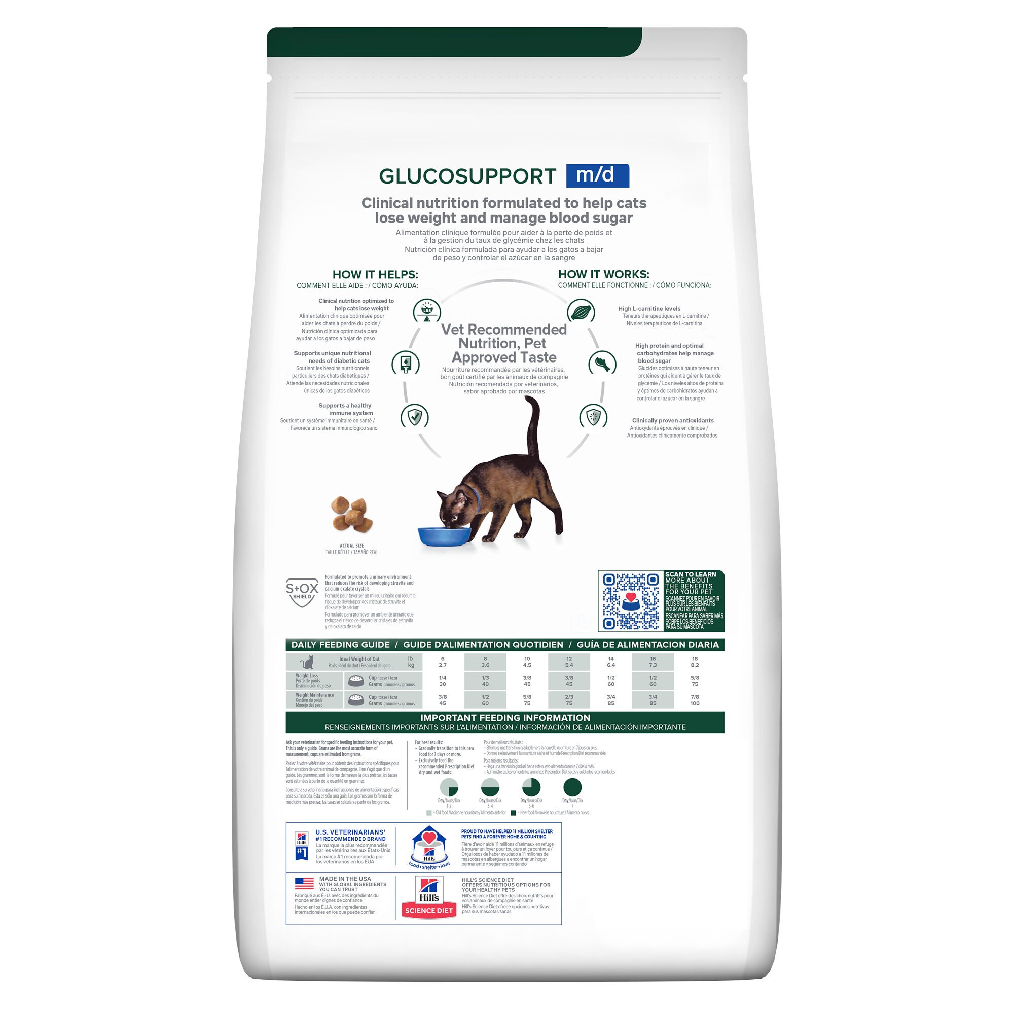 Hill's Prescription Diet™ m/d™ Feline is a complete and balanced food that provides all the nutrition your cat needs. Please consult your veterinarian for further information on how our Hill's Prescription Diet™ foods can help your cat to continue to enjoy a happy and active life.