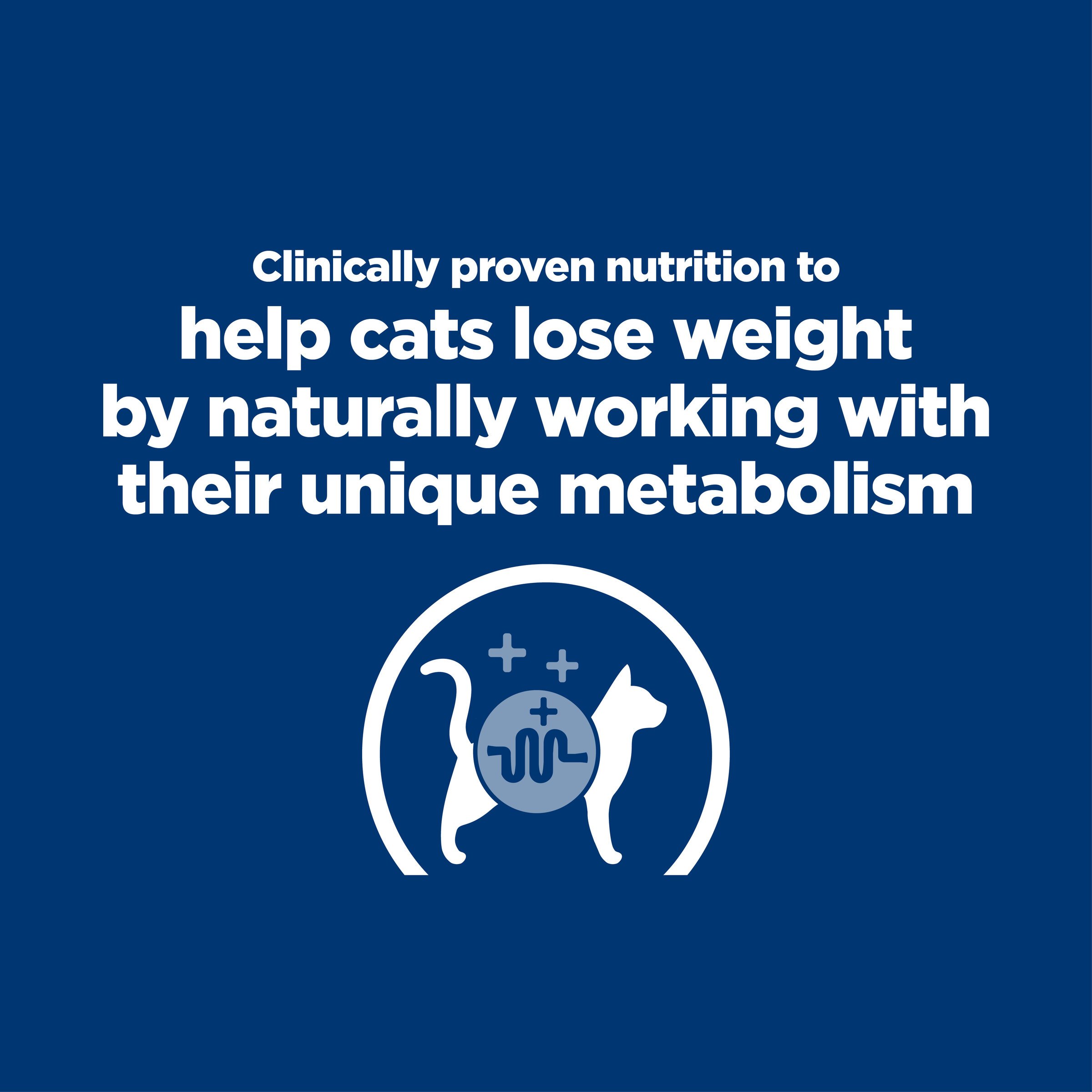 Hill's Prescription Diet™ Feline Metabolic provides all the nutrition your cat needs during weight loss and maintenance. Please consult your veterinarian for further information on how our Hill's Prescription Diet™ and Science Diet™ foods can help your cat maintain happiness and a healthy weight for life.