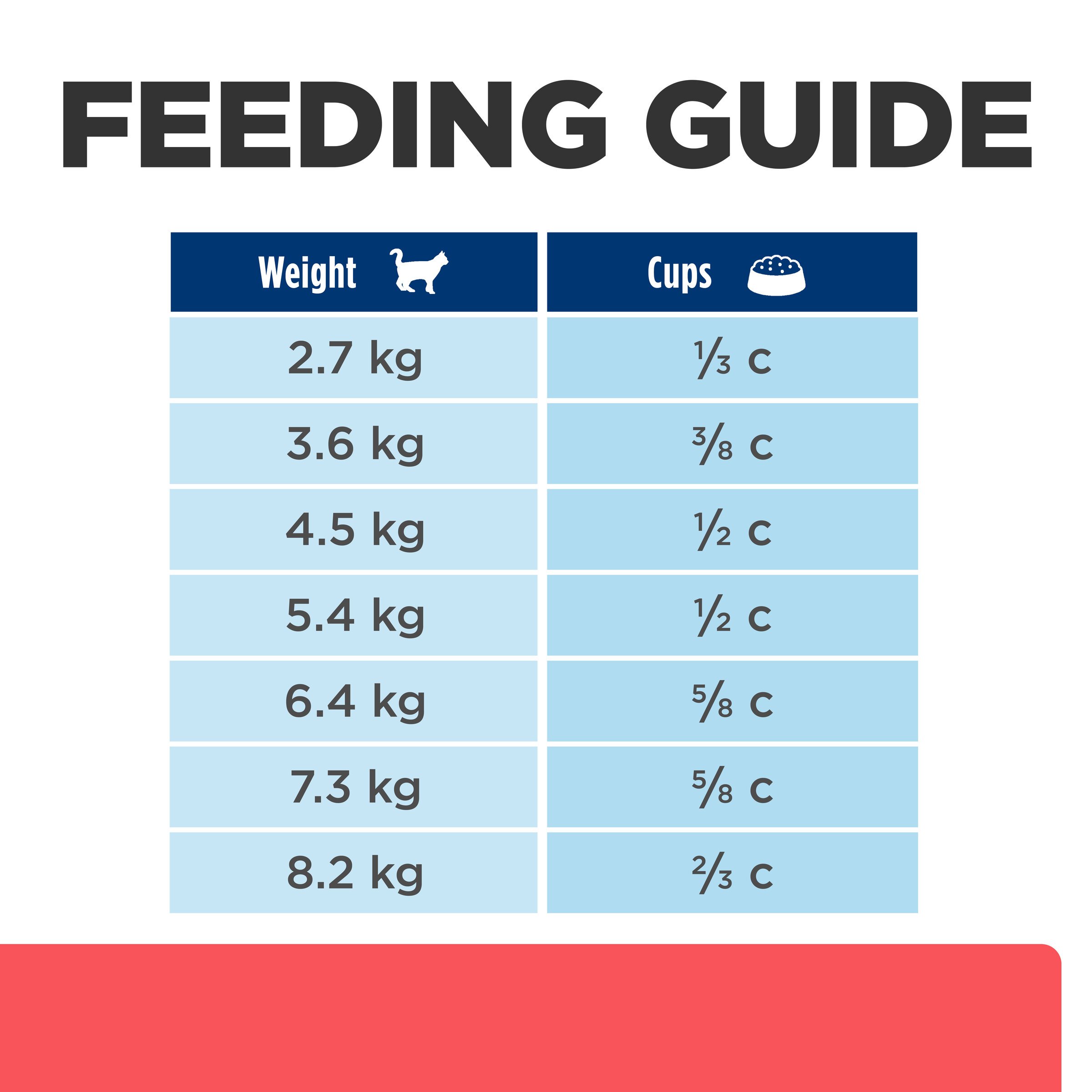 Weight of Cat — lbs (kgs)Amount per Day - cups (grams)