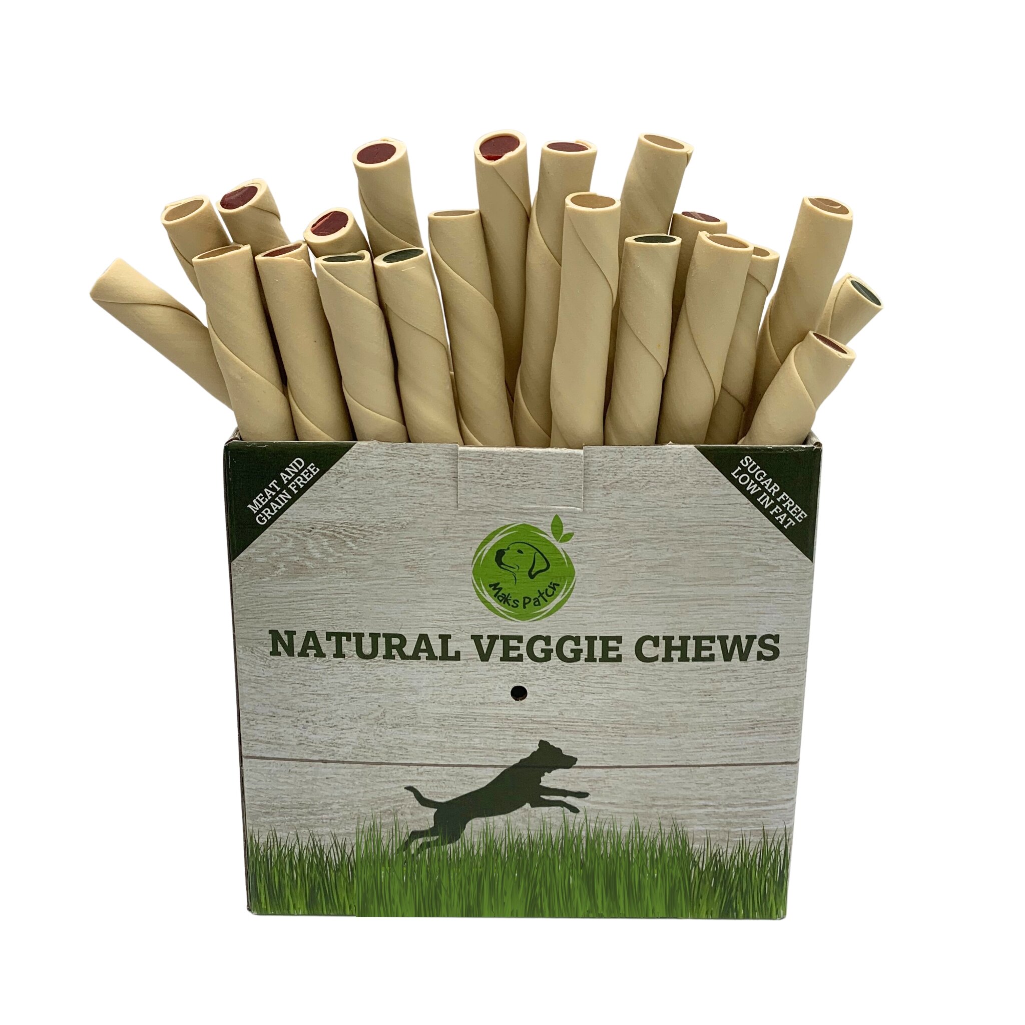 Our Mak's Patch Veggie Twisted Sticks are a flavour-packed favourite, made with all-natural, tummy-friendly ingredients. Specially designed for dogs with sensitive stomachs, they’re hypoallergenic, grain-free, and full of gentle plant-powered nutrition. Plus, their fun twisty shape helps clean teeth as your pup chews and enjoys every bite!