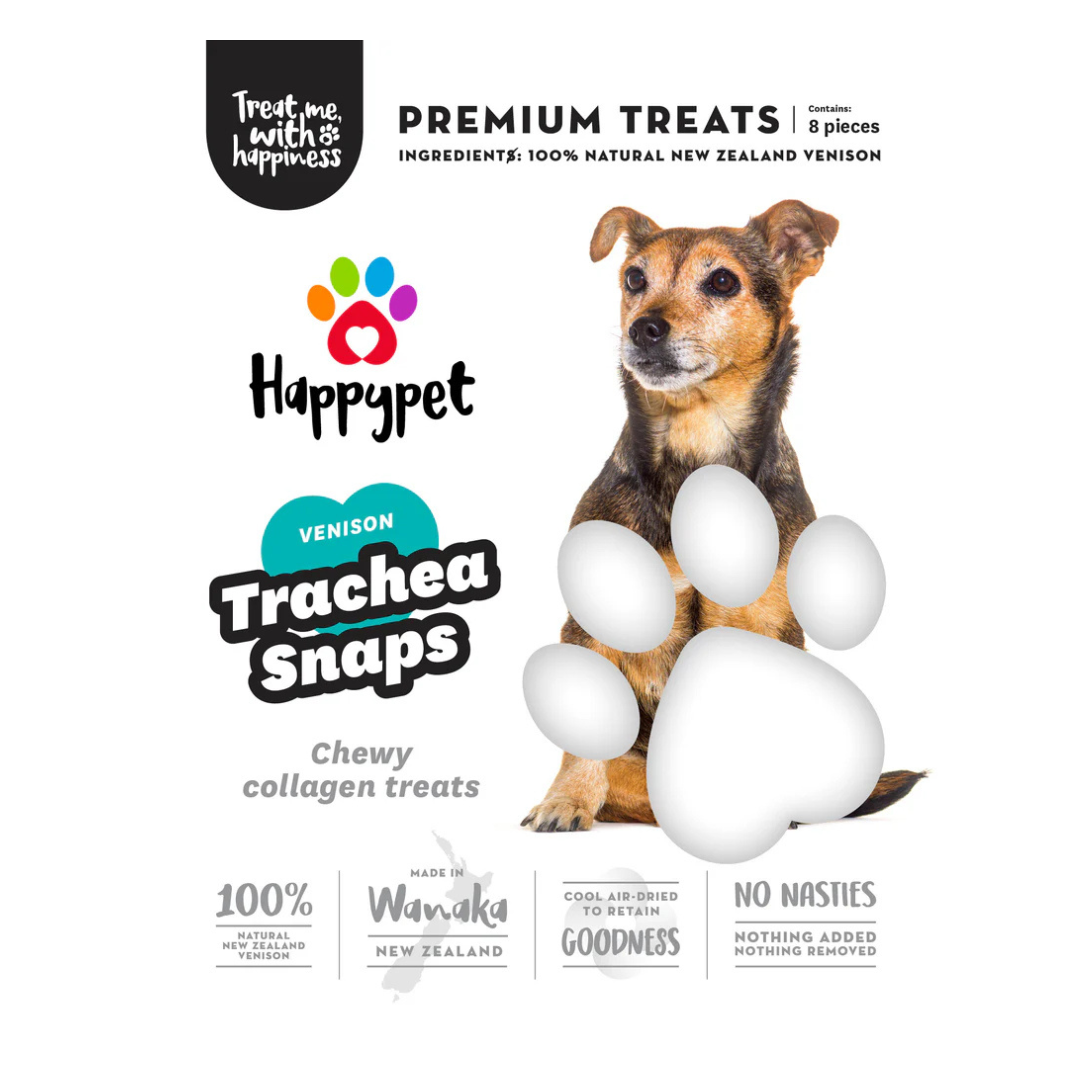 Happypet's Deer Trachea 8 pack – a gourmet delight for your beloved pet. Each piece is sourced from premium NZ Deer, ensuring an unmatched level of quality and freshness. Rich in natural chondroitin and glucosamine, these trachea treats are not just tasty but also beneficial for your pet's joint health. The crunchy texture is perfect for dogs of all sizes, promoting dental hygiene by naturally cleaning their teeth as they chew. Each trachea is carefully dried to lock in the natural flavors, making it an irresistible treat that your pet will crave. Free from artificial additives and preservatives, our Deer Trachea treats are as pure as the love you share with your pet. Packaged in a convenient 8 pack, it's the perfect treat for special occasions or just because. With Happypet, you're not just giving a treat; you're giving a moment of pure joy.