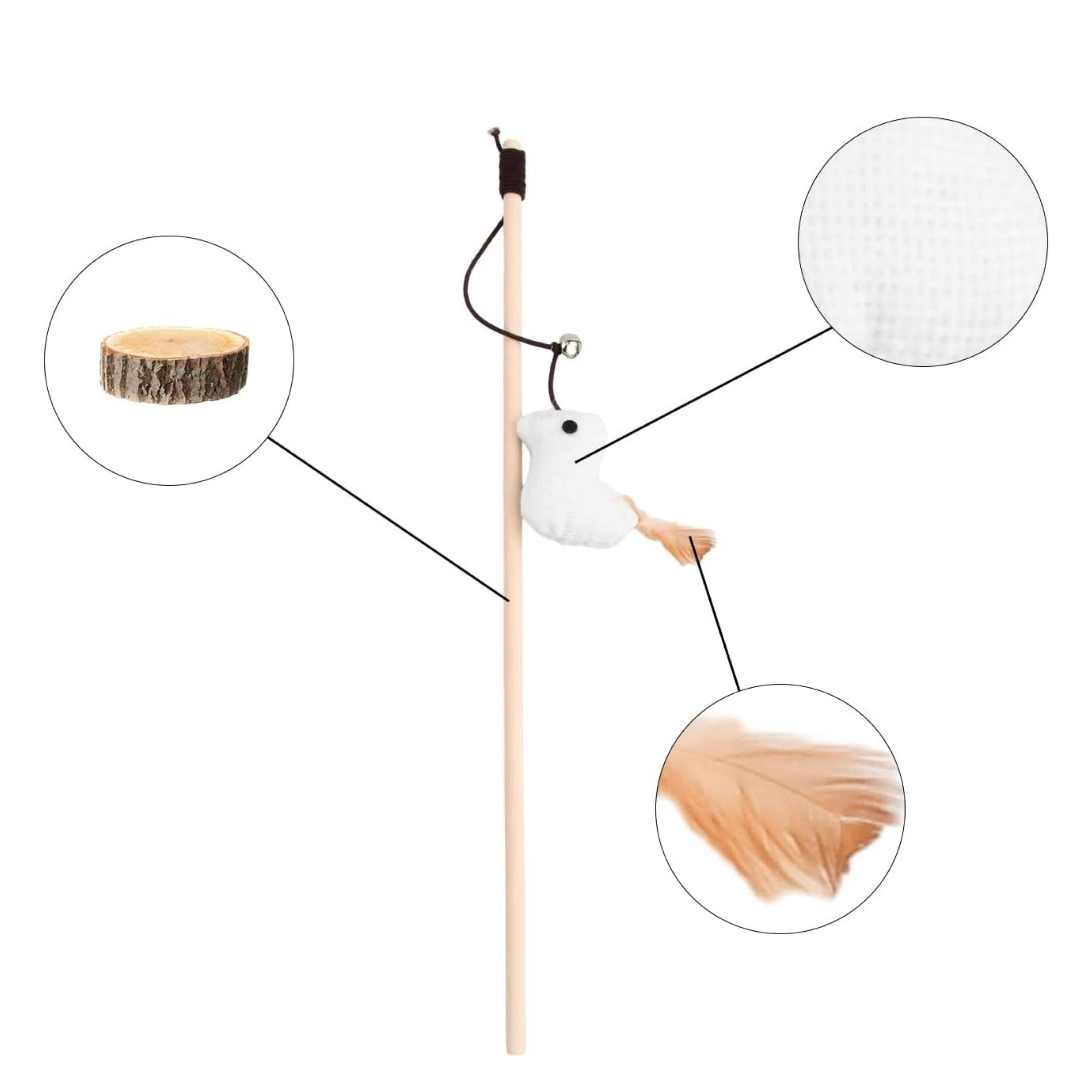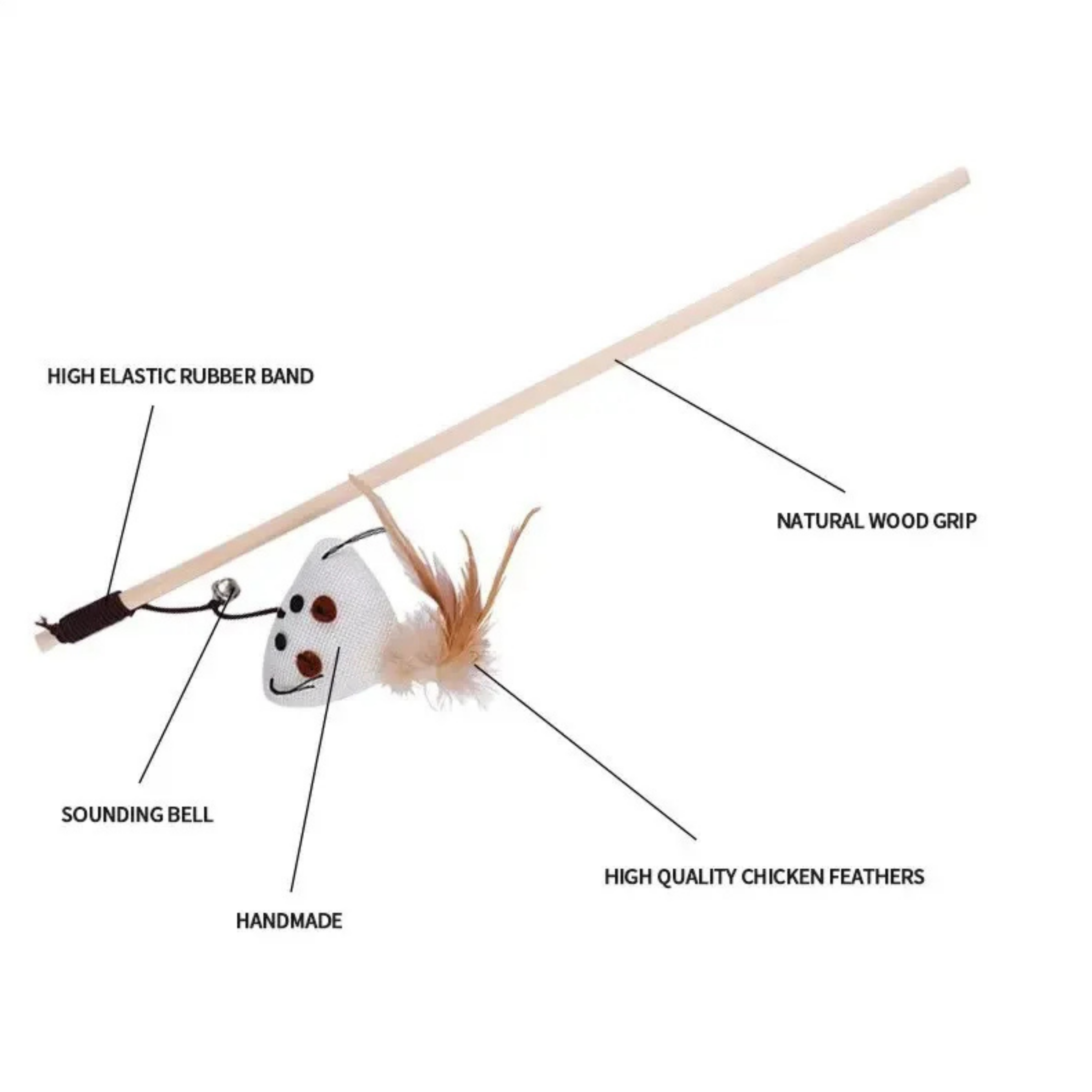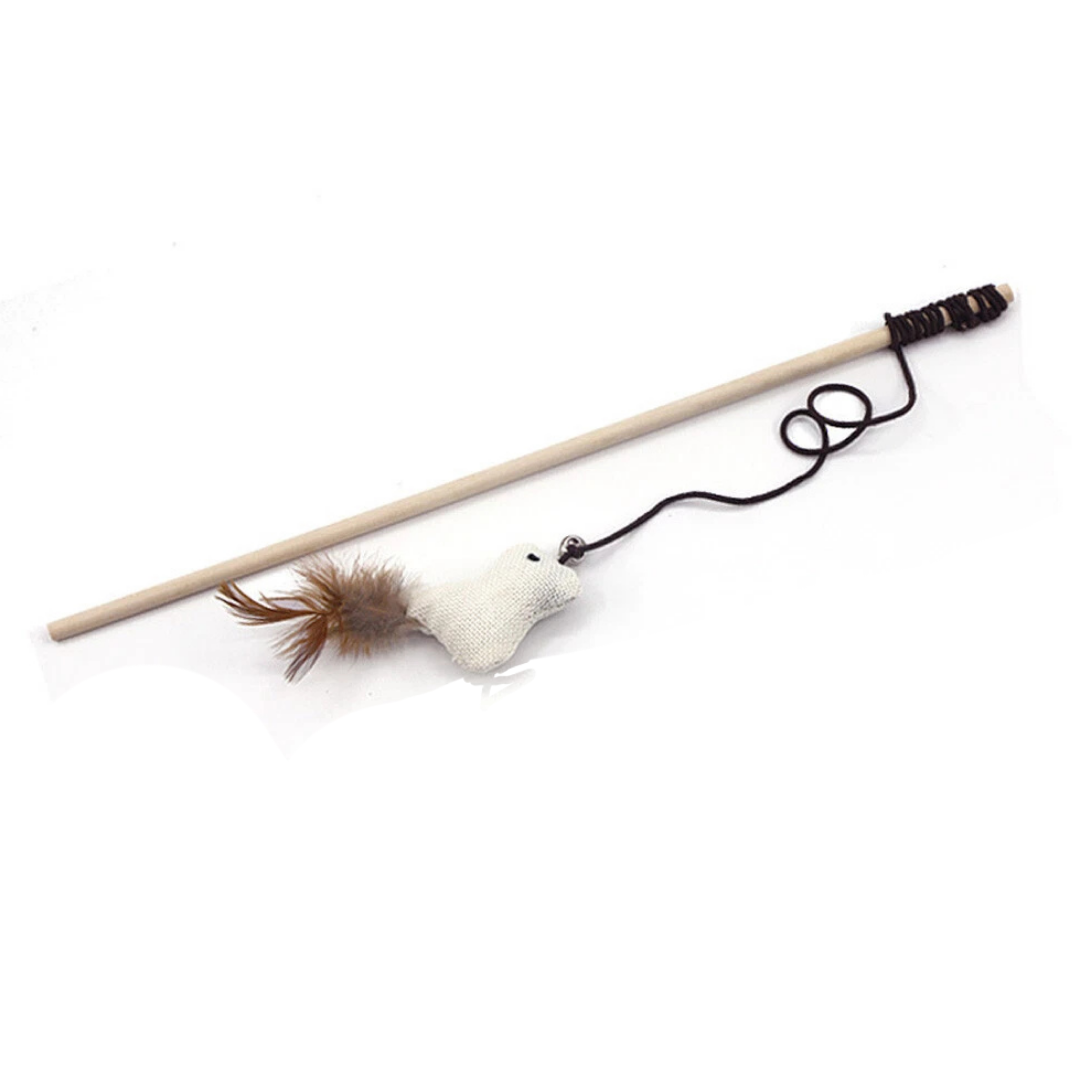 This wooden teaser toy is great to stimulate your cat to do some exercise! Watch your cat bat and swat for the natural woven toy at the end of the elastic string!